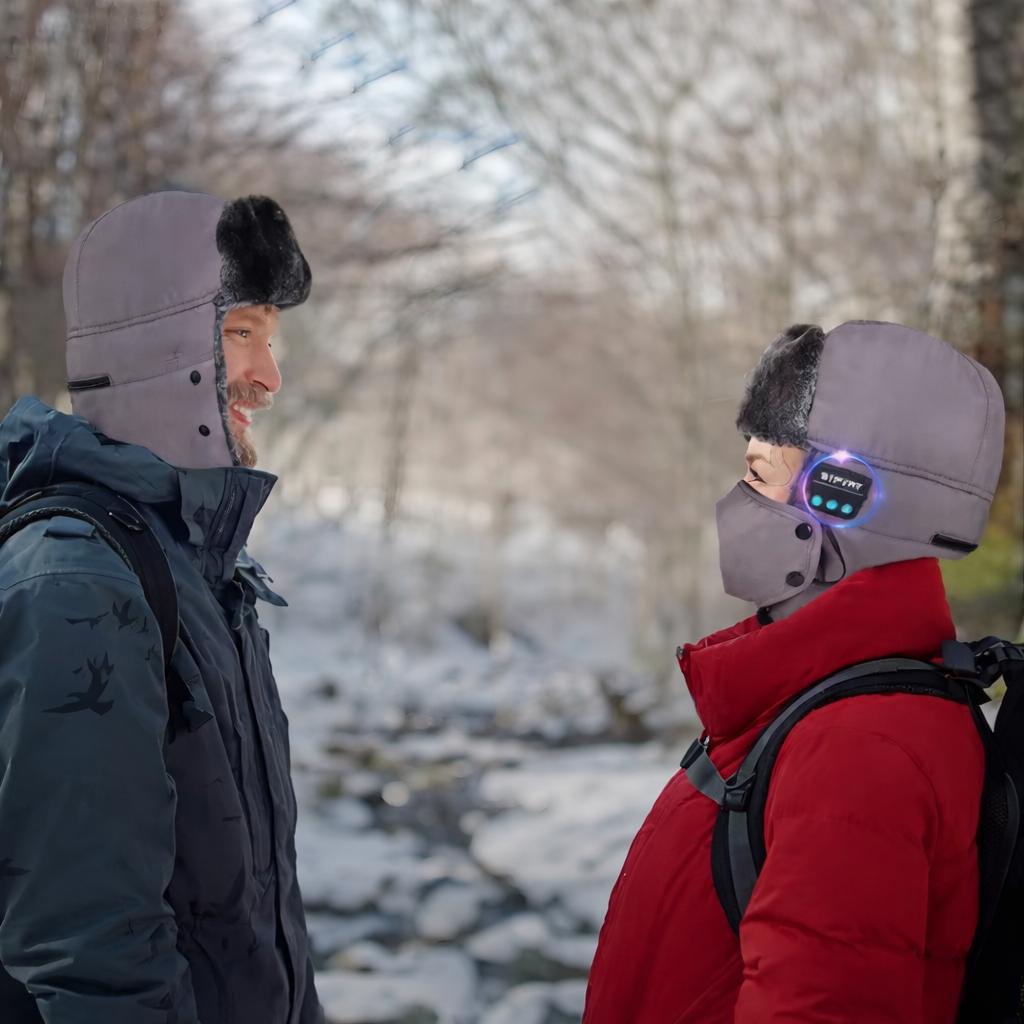 Cagoule d'hiver á Bluetooth avec masque, casquette à oreillettes en fausse fourrure, casque russe Trared, coupe-vent, imperméable, temps froid.